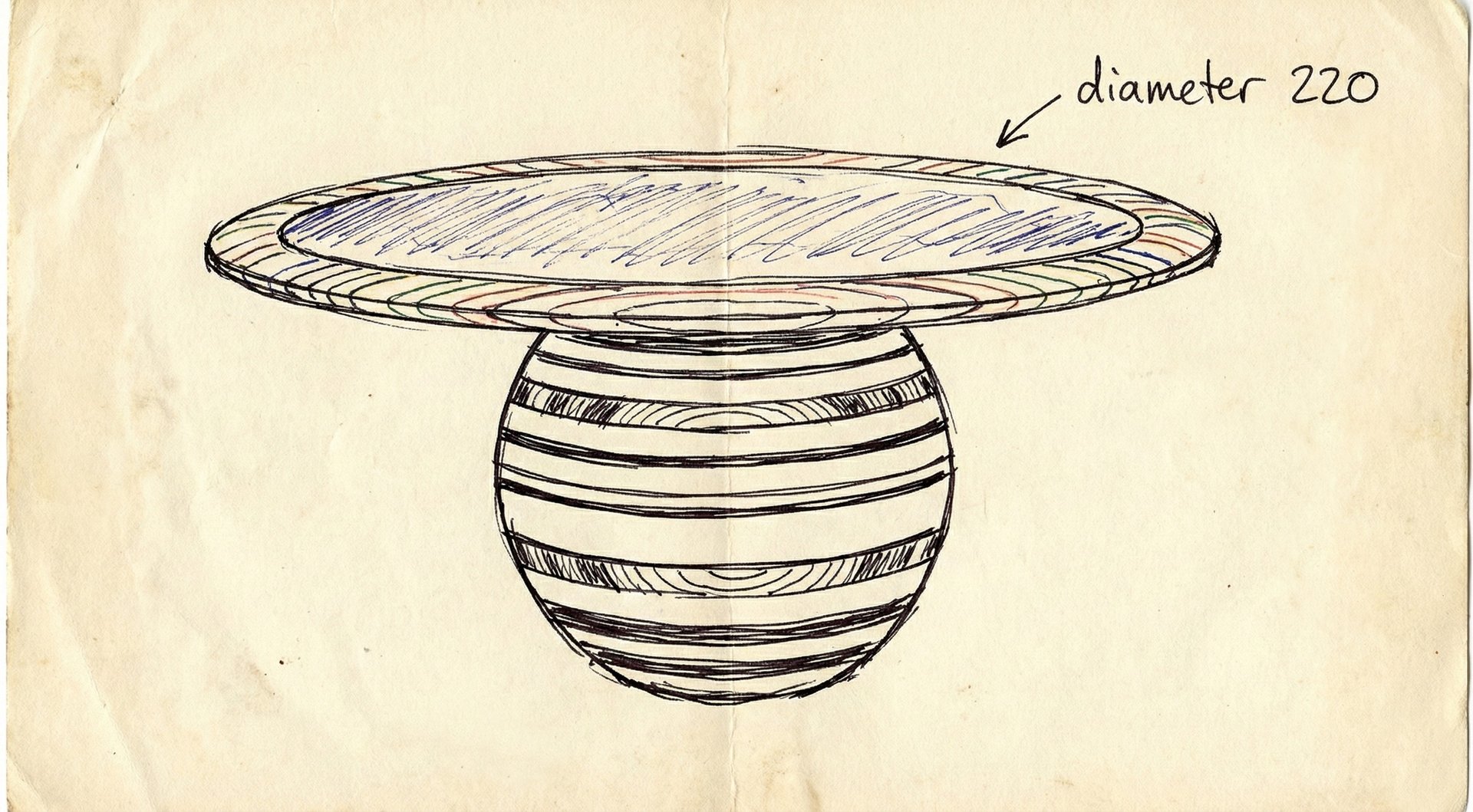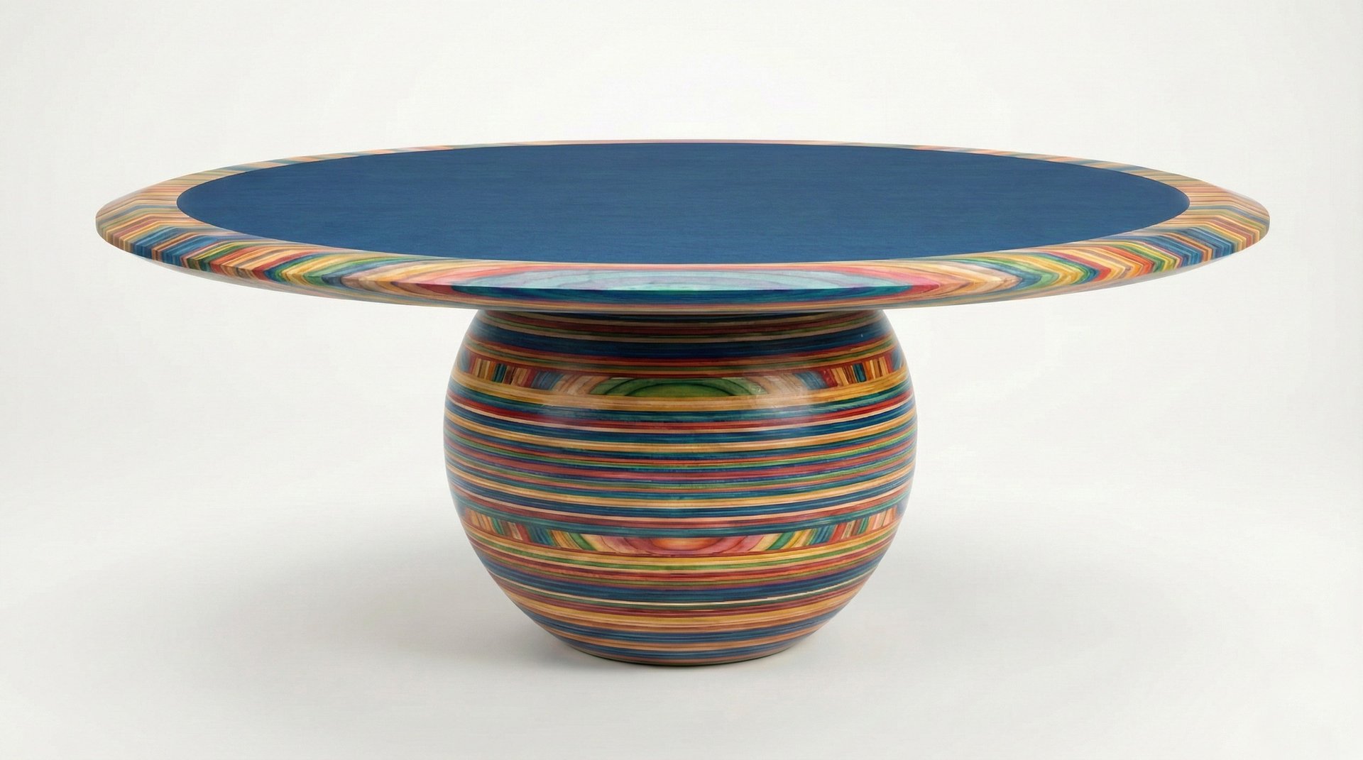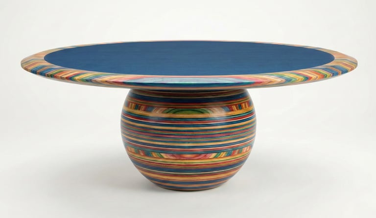 Challenge: dyed wood layers as the foundation of the specific table's shape.