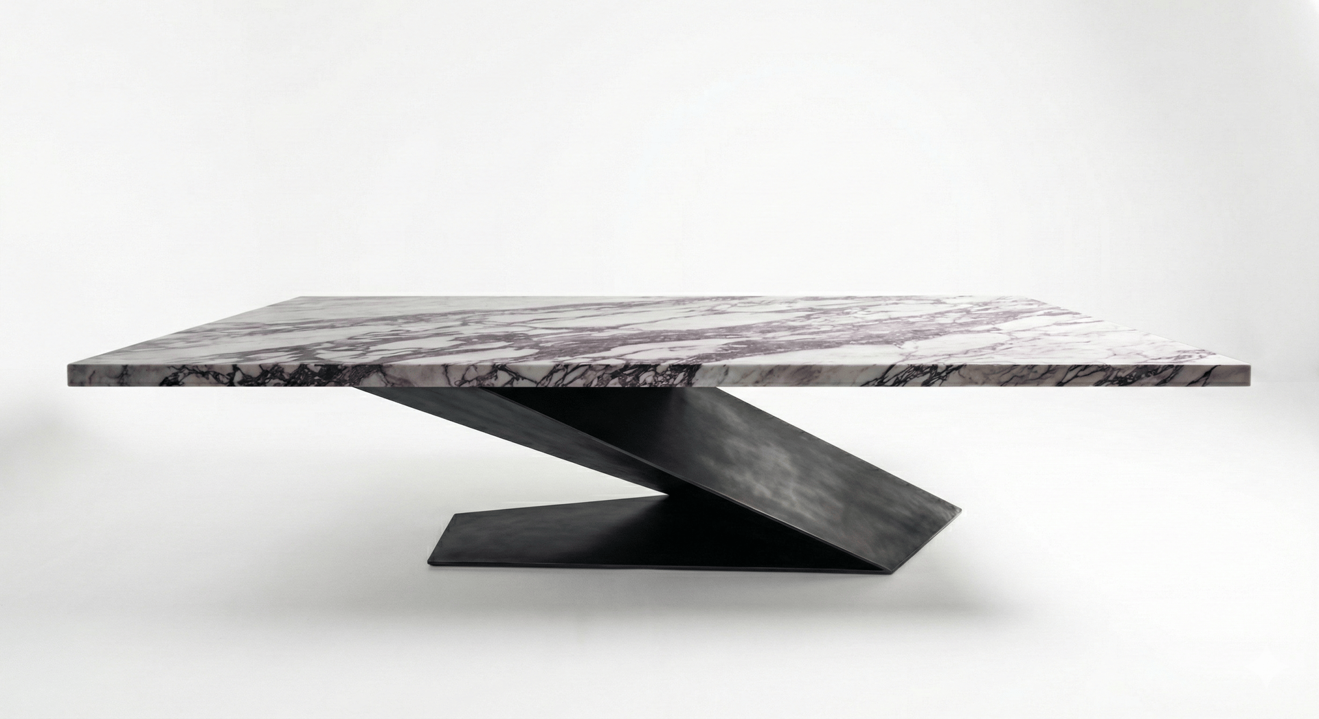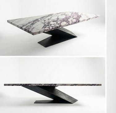 Challenge: 250kg Calacatta Viola Marble top with a gravity-defying cantilever base.